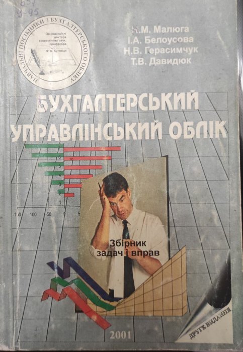 Опис: Управлінський облік: збірник задач і вправ: навч. посібник / Н. М. Малюга, І. А. Белоусова, Н. В. Герасимчук, Т. В. Давидюк . - 2-ге вид., перероб. і доп. - Житомир: ПП Рута, 2001.- 256 с. - (навч. посіб. з бухгалтерського обліку).