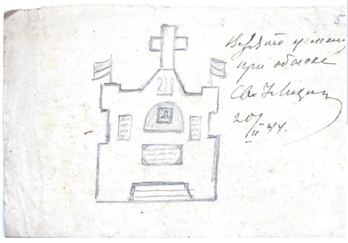 На верхній частині пам'ятника були фото односельчан, а нижче викарбувані слова вірша «Молитва», який написав священник Іван Ліхнякевич. По закінчені війни, головою колгоспу стає Євдокія Терещенко і наказує знищити цей пам'ятник. Спочатку, відбили світлини, затерли текст та збили хреста. А згодом, і всю споруду підірвали.