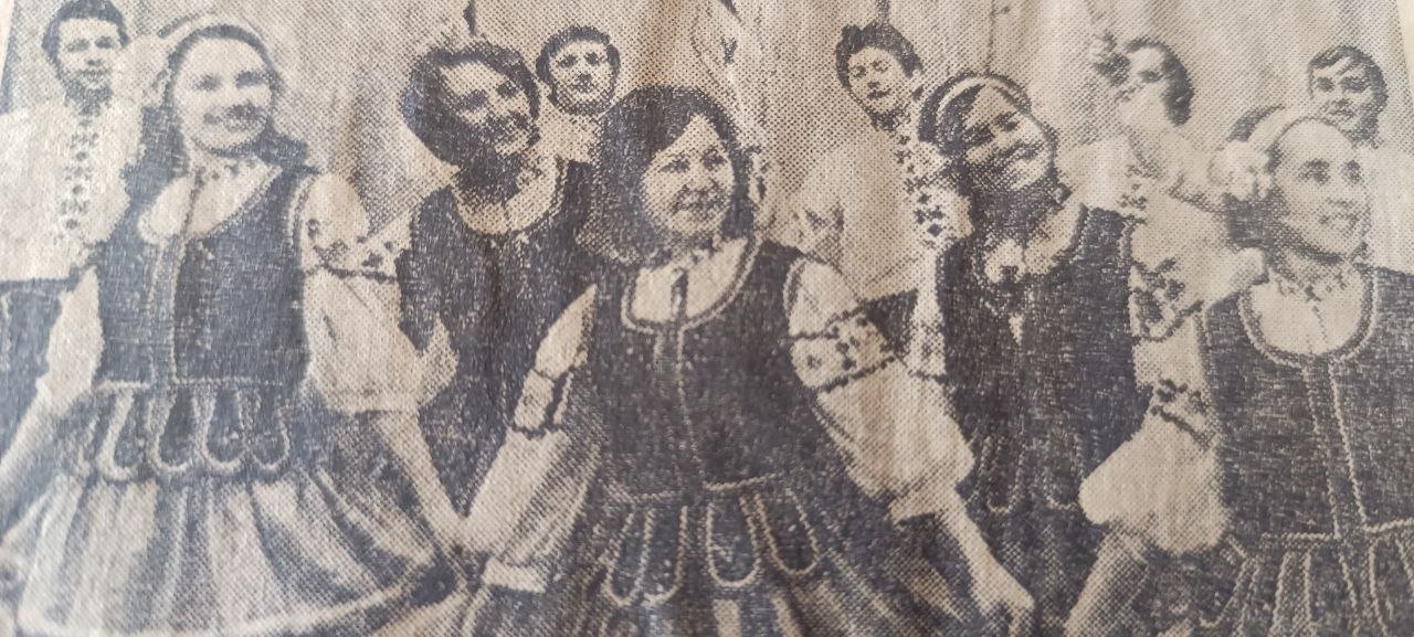 На фото : Лауреат республіканського фестивалю самодіяльного мистецтва самодіяльний ансамбль танцю колектив "Терниця" У його виконанні позначені такі танці ,як "Терниця", "Поліські рушники", "Поліська полька", "Кружало", "Крутак". Фото Миколи Зінчука. Приблизно 50-60 роки .