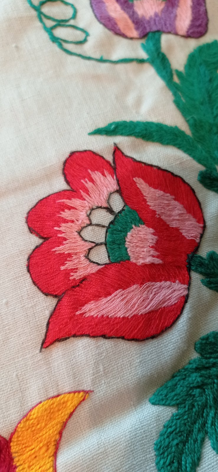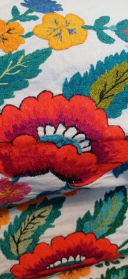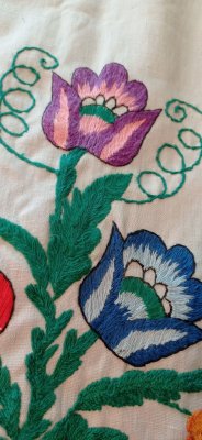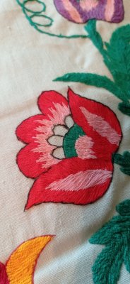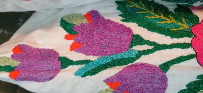Вишито в стилі " гладь" квітчасті, яскраві візерунки, як символ краси, розвітку, життєвої сили та кохання.