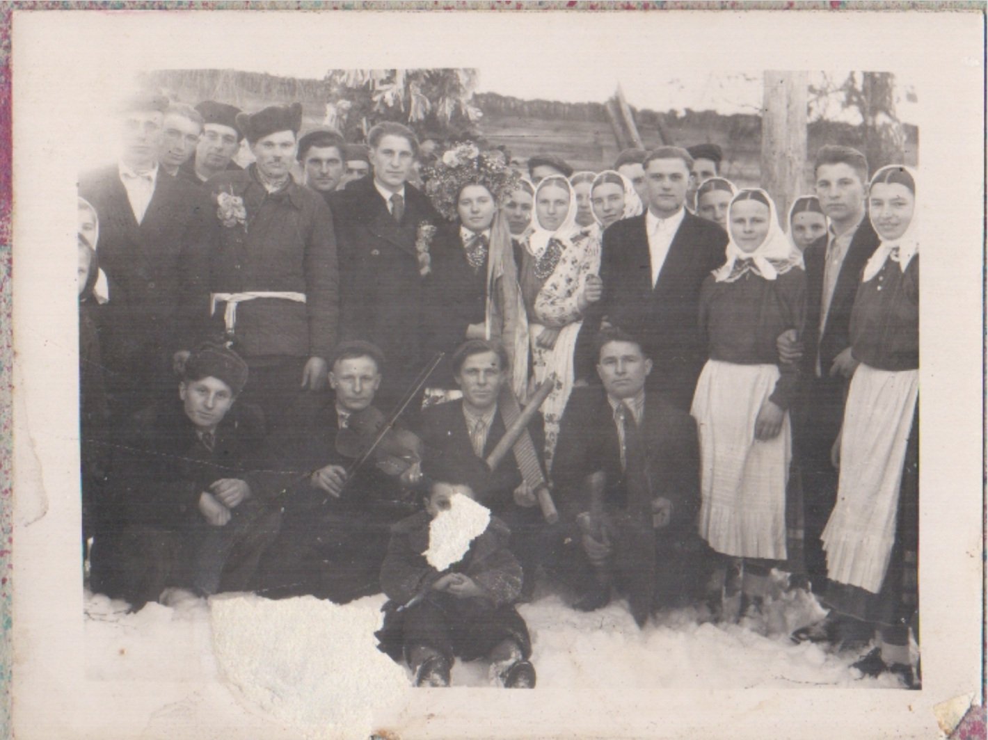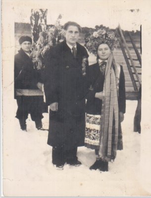 На фото Демидович Михайло Дмитрович ( 1931 року народження) та Петрик Палагія Трохимівна ( 1941 року народження) жителі села Березичі. Весілля.