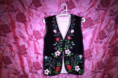 Український традиційний жилет, який також відомий як горсет. Це безрукавний верхній одяг, який є частиною національного бойківського костюма. Пошитий із чорного оксамиту та щедро оздоблений яскравою ручною вишивкою гладдю.