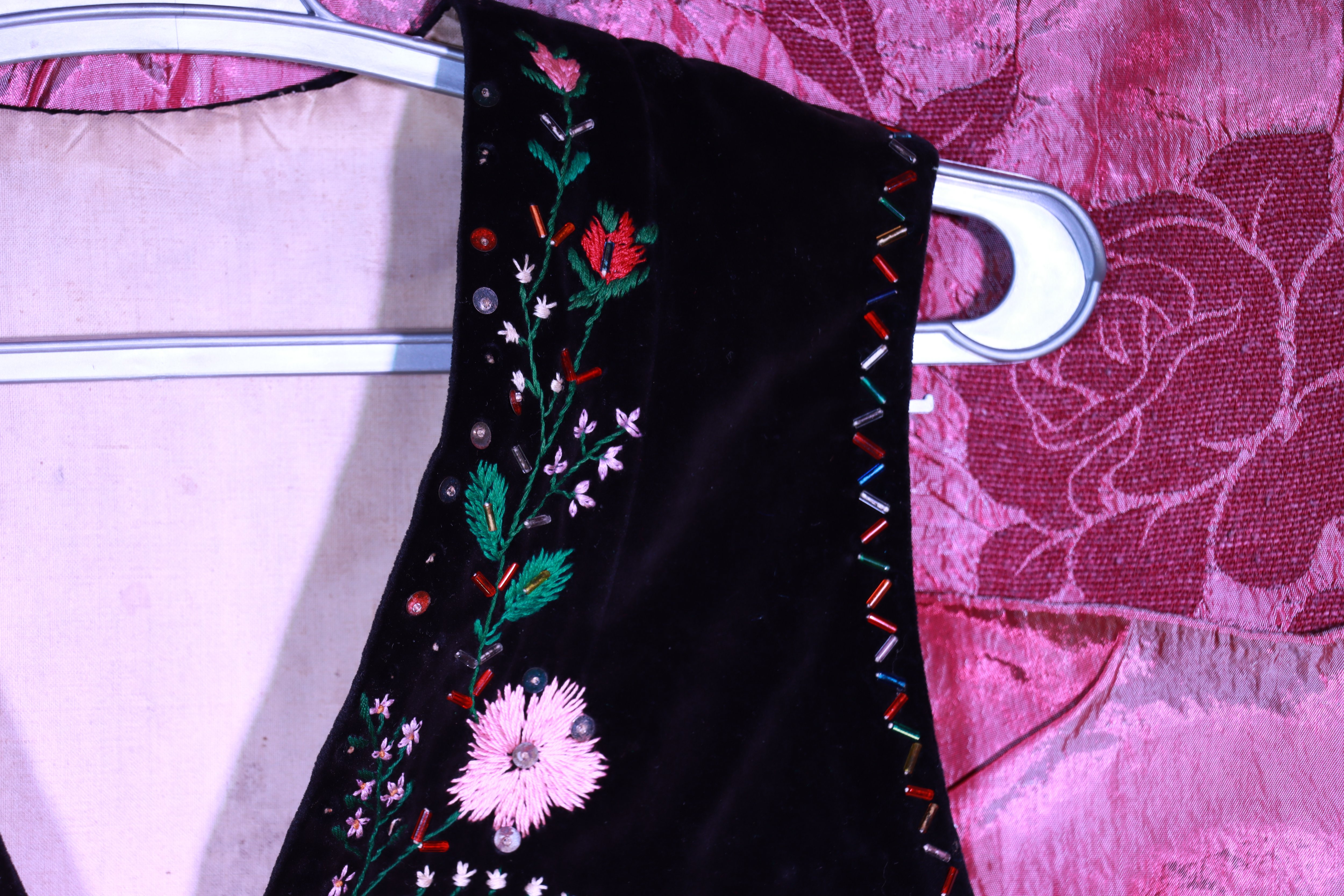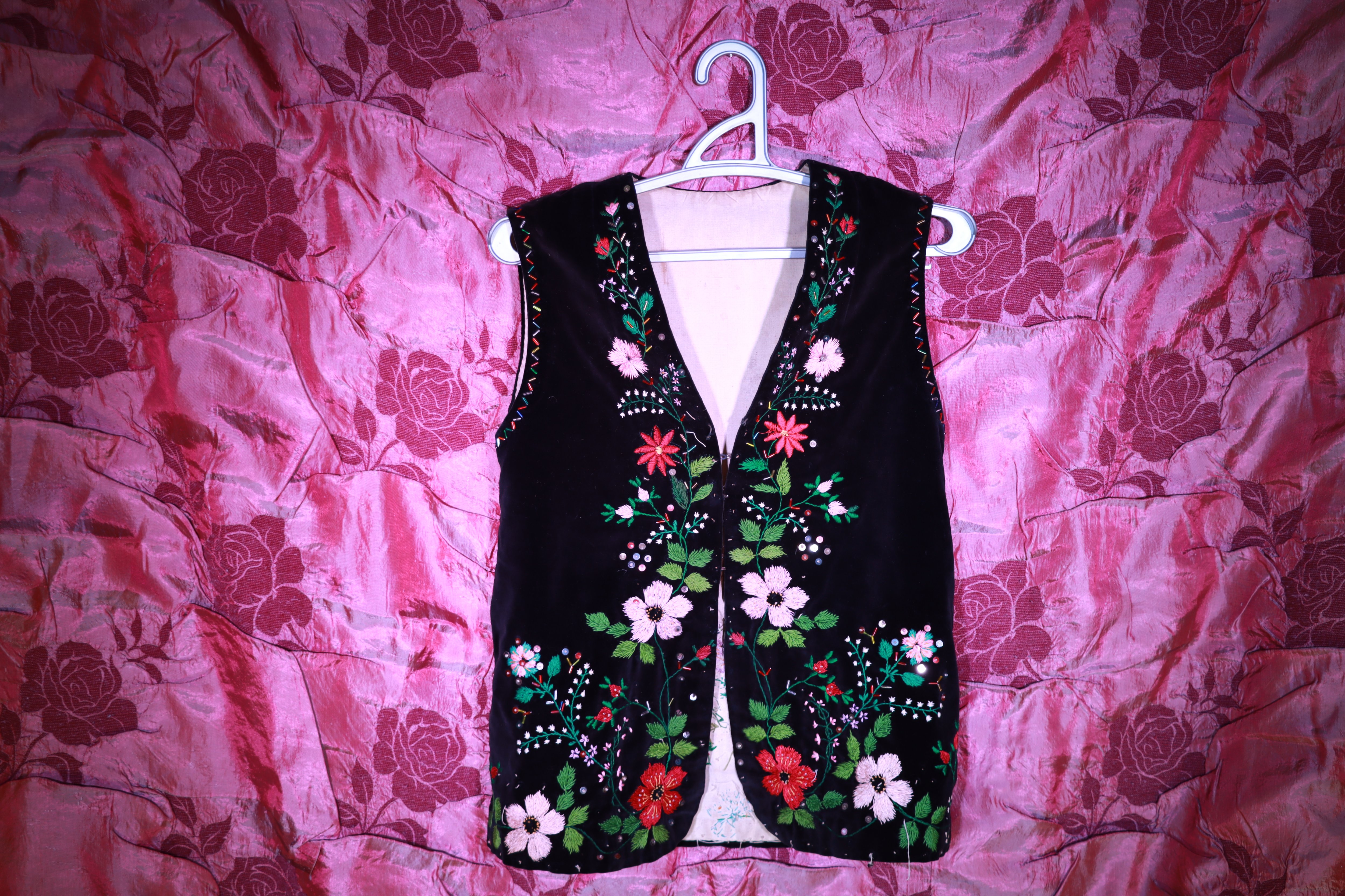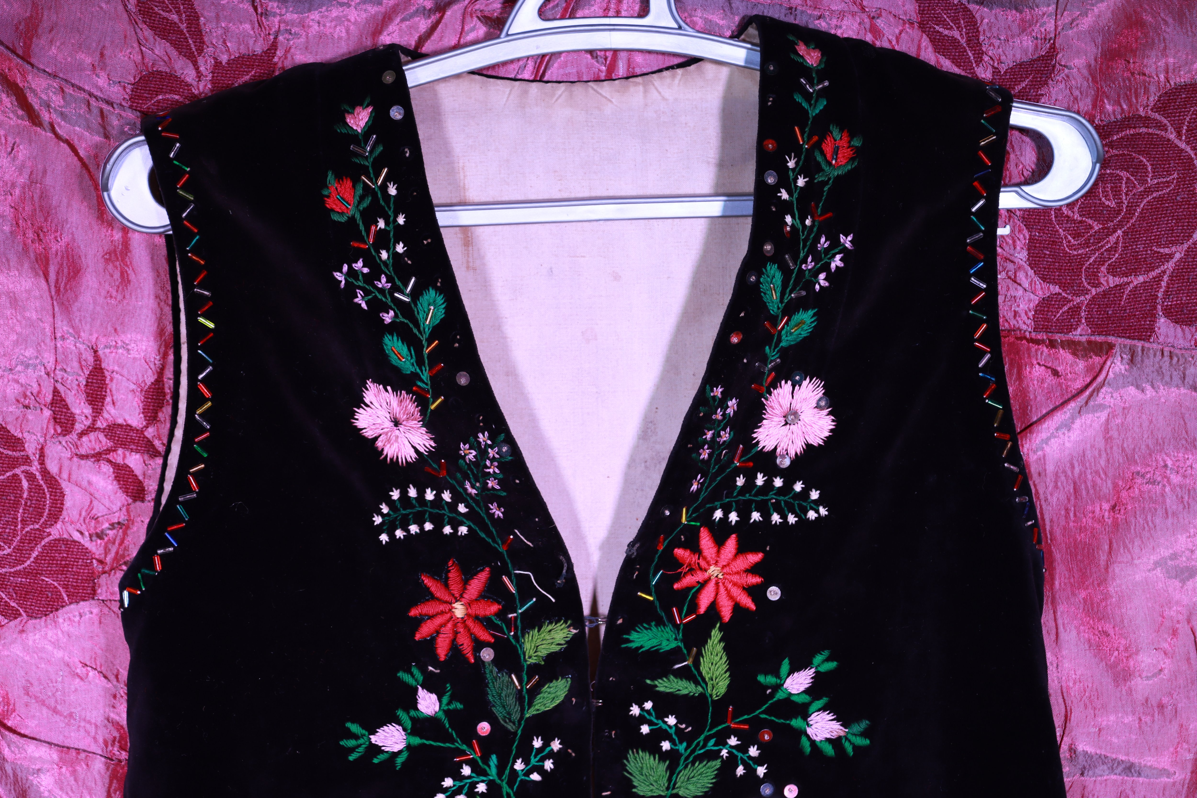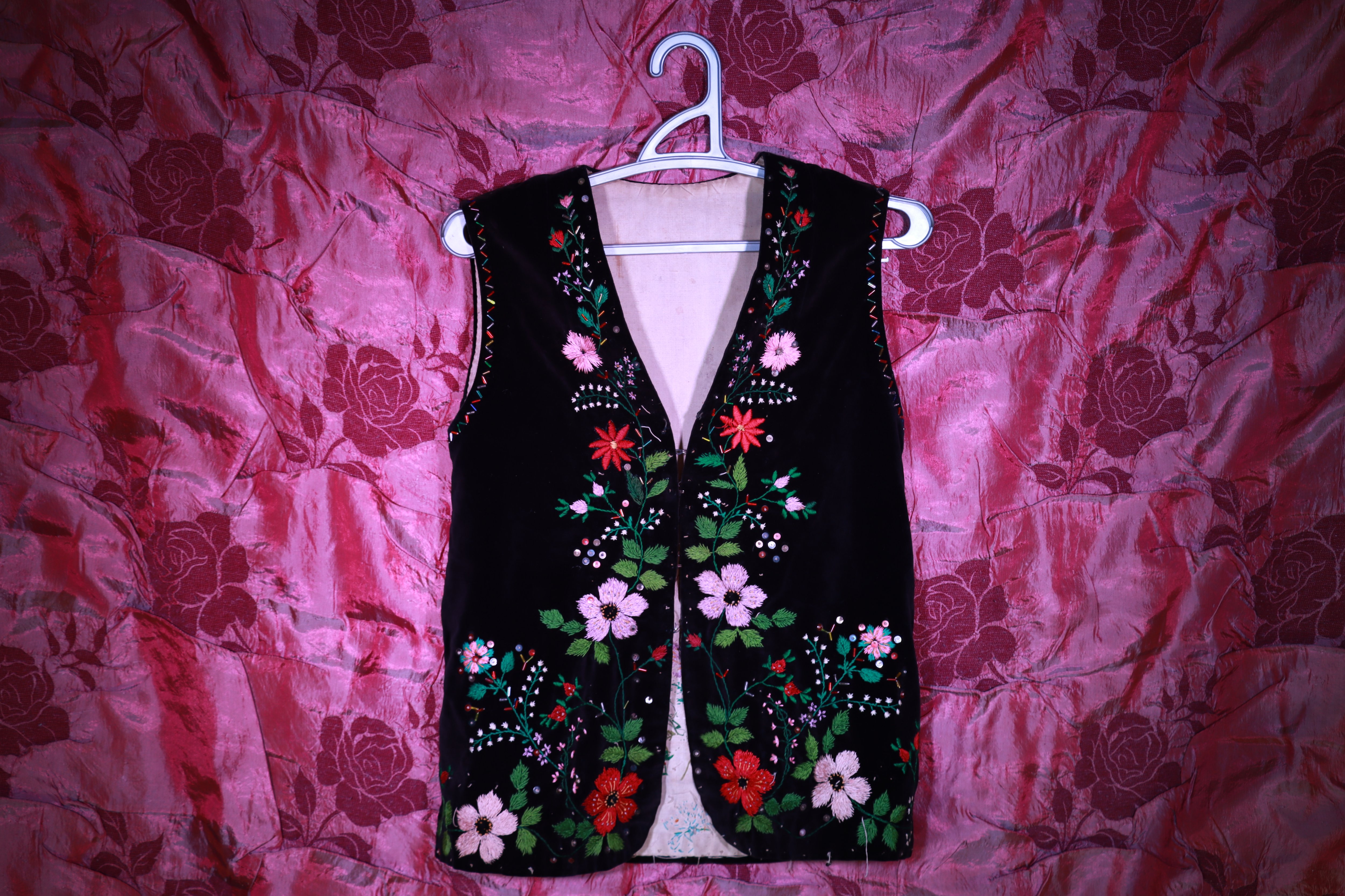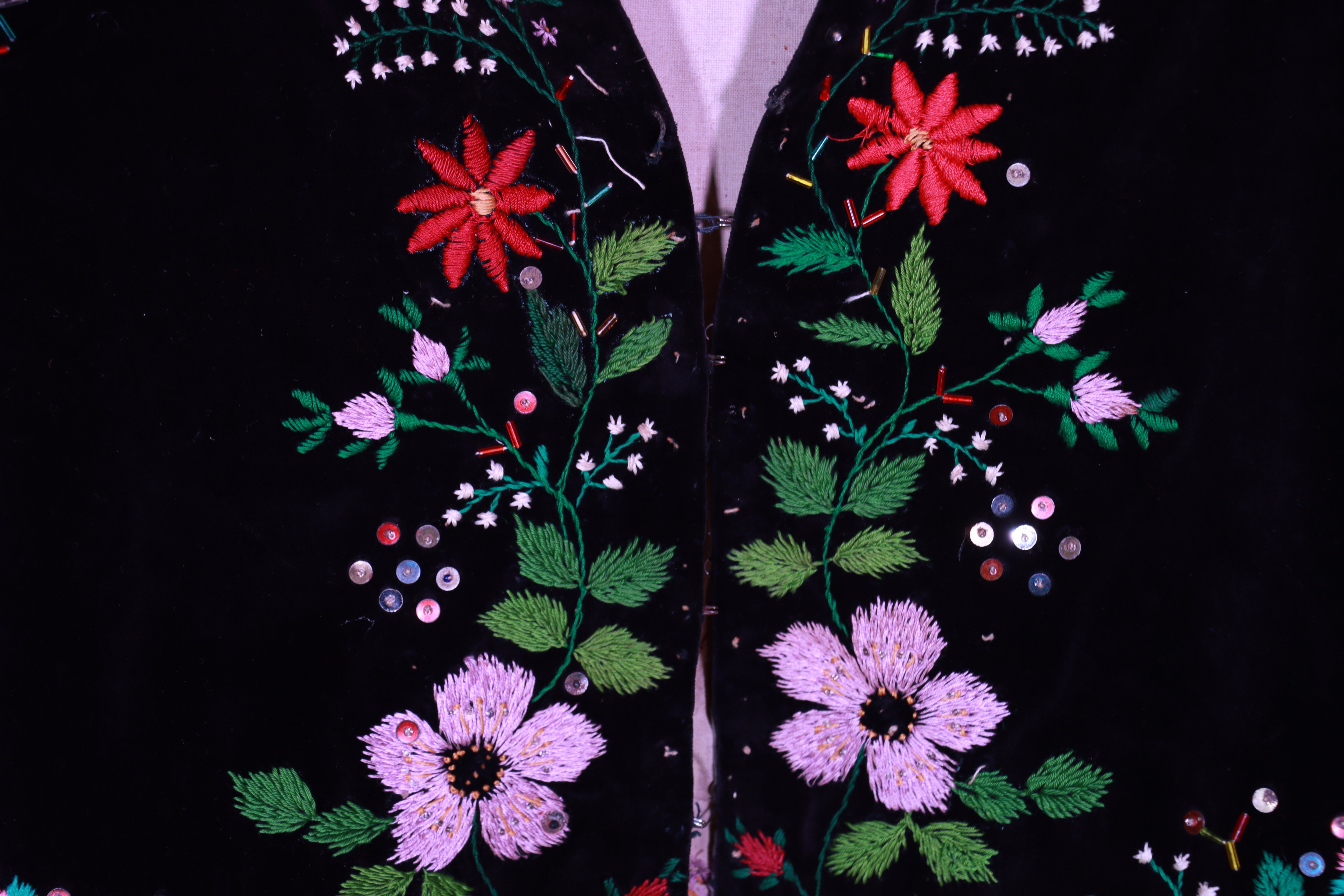 Такий жилет був невід’ємною частиною святкового жіночого строю бойків на Рожнятівщини у середині ХХ століття. Його носили на великі свята, весілля, храмові празники. Вишивка на чорному оксамиті символізувала достаток, жіночу красу та майстерність господині, а сам кептар передавався в родині як цінний спадок, що зберігав тепло рук майстрині та пам’ять про давні традиції.