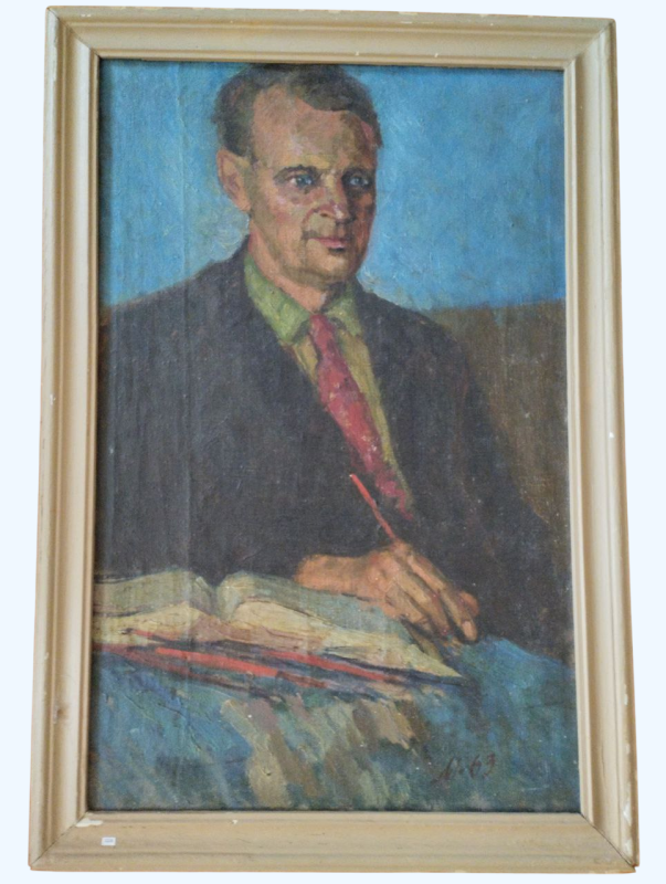 Портрет М. О. Савчука виконаний Миколою Мамчуком у 1963 році на полотні з мішковини, натягнутому на дерев'яний підрамник. На полотні зображений в анфас витончений поясний портрет рожищенського художника та актора М. Савчука. Обличчя і погляд Савчука спрямовані в правий бік. Одягнений в зелену рубашку, червоний галстук та чорний піджак, волосся зачесане на ліву сторону. У правій руці, яка лежить на синьому столі, Савчук тримає червону ручку. Біля руки у нижньому лівому куті картини зображено товстий розкритий блокнот над яким лежить ще 3 ручки червоного кольору. Картина заключена в блідо-бежеву дерев'яну рамку. Зі зворотнього боку підрамник і рама по кутках скріплені дерев'явними та фанерними трикутниками.