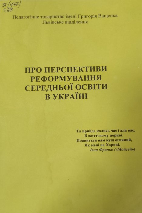...5.- 40 с. львівське відділення педагогічного товариства ім. григорія ващенка у даному виданні пропонує пропозиції до концепції які спонукатимуть освітян до роздумів про подальшу долю середньої освіти ...