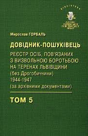Довідник-пошуковець. Реєстр осіб, пов'язаних з визвольною боротьбою на теренах Львівщини. (без Дрогобиччини). 1944-1947. (за архівними документами).