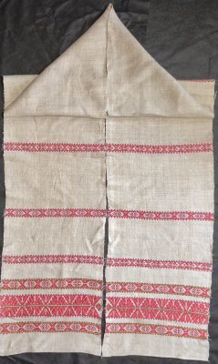 із червоним орнаментом. техніка вишивши - знизування. полотно має природний сірий відтінок, що свідчить про невибілену сировину. ширина р...