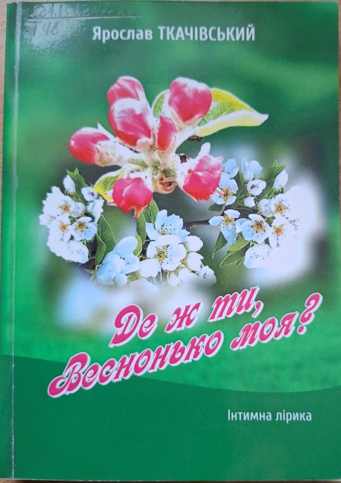 Опис: Ткачівський Я. Де ж ти, Веснонько моя? : інтимна лірика (роман у віршах про кохання) / Ярослав Ткачівський. - Івано-Франківськ: Місто НВ, 2022. - 220 с. ISBN 978-966-428-822-1