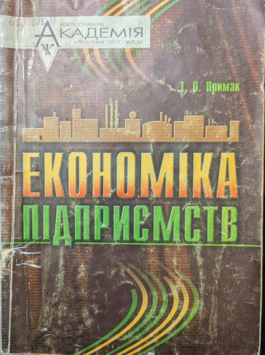 Опис: Примак Т. О. Економіка підприємства: навч.посіб. / Т. О. Примак. - Київ: МАУП, 1999. - 108 с. : іл.