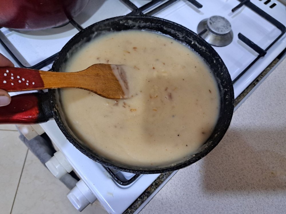 Постійно помішуючи, довести до кипіння. Варити до консистенції густої сметани.