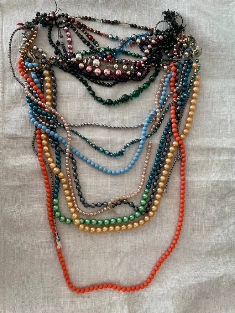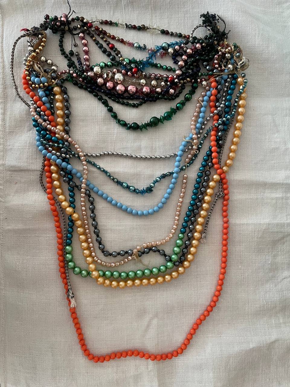 На світлині представлено традиційне жіноче намисто, складене з кількох рядів різнокольорових намистин. Подібні прикраси були важливим елементом народного строю та виконували не лише естетичну, а й символічну функцію. Кількість рядів, колір і матеріал намистин могли свідчити про достаток родини, вік та соціальний статус власниці. Намисто одягали у святкові дні, на обряди та важливі події, передавали у спадок як родинну цінність.