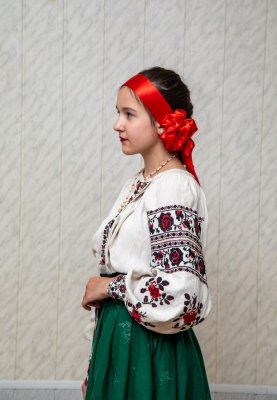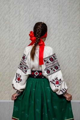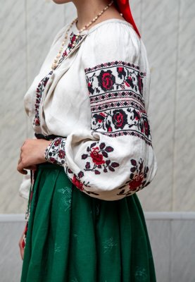 Сорочка жіноча довга, полотно лляне, домоткане, виріз горловини овальний (горловина призібрана під обшивку), комір відсутній, виріз пазухи боковий, рукава прямі з підрукавними клинцями, низ сорочки оздоблений мереживом виготовленим вручну за допомогою гачка, краї рукавів зібрані під манжети, вишита рослинним орнаментом на рукавах та пазушній планці червоно-чорними нитками у техніці хрестик. Є частиною українського строю, характерного для с. Малинівка, Рожищенської громади.