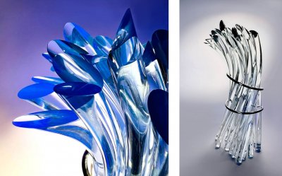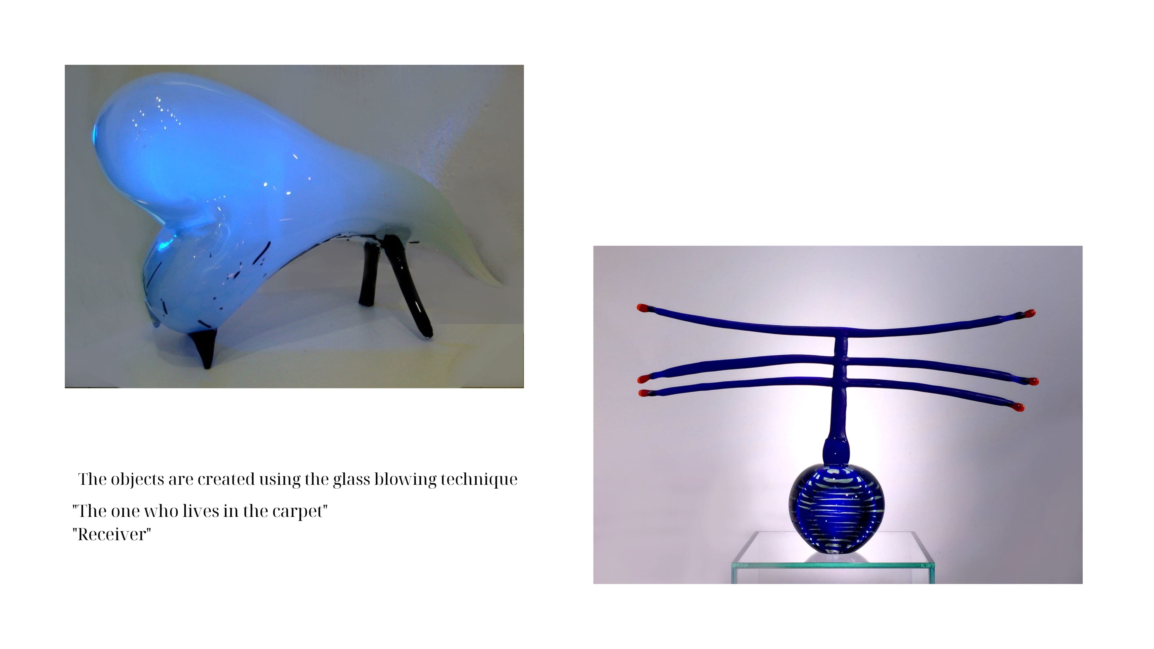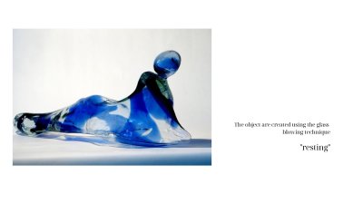 На відміну від багатьох майстрів, які слідують традиції ремісничої демонстративності, Евеліна Тринцолин використовує гутні можливості як інструмент формування складних образів, насичених світлом, повітрям і поглинутою енергією руху.