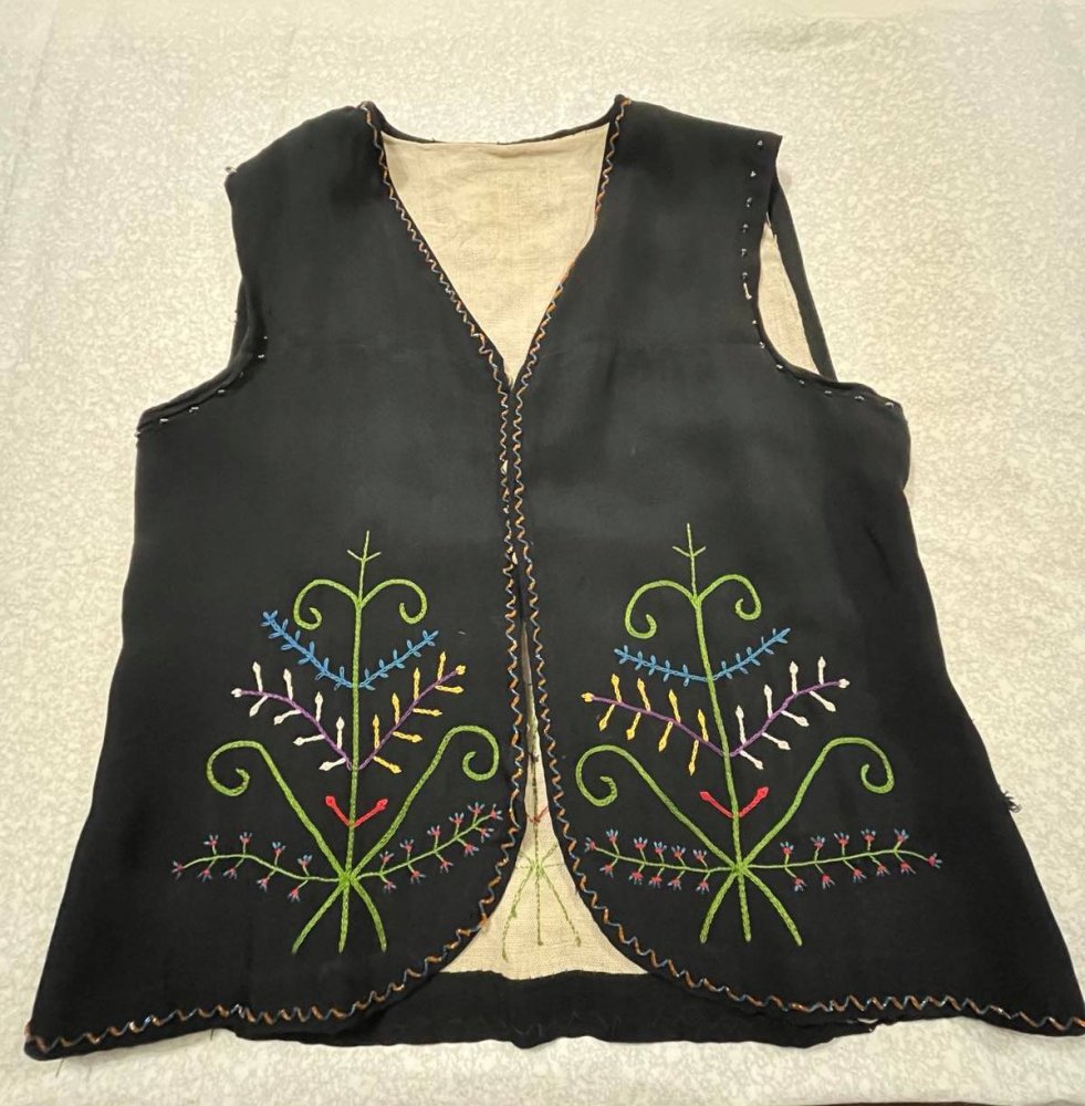 Горсик із вовняної тканини, прикрашений ручною вишивкою, виконаною технікою стебнівки (однобічної штапівки). На передніх полах розміщені стилізовані рослинні візерунки, характерні для вишивальної традиції Сваричева. Виріб належить до середини ХХ століття та відображає місцеву манеру оздоблення традиційного бойківського строю.