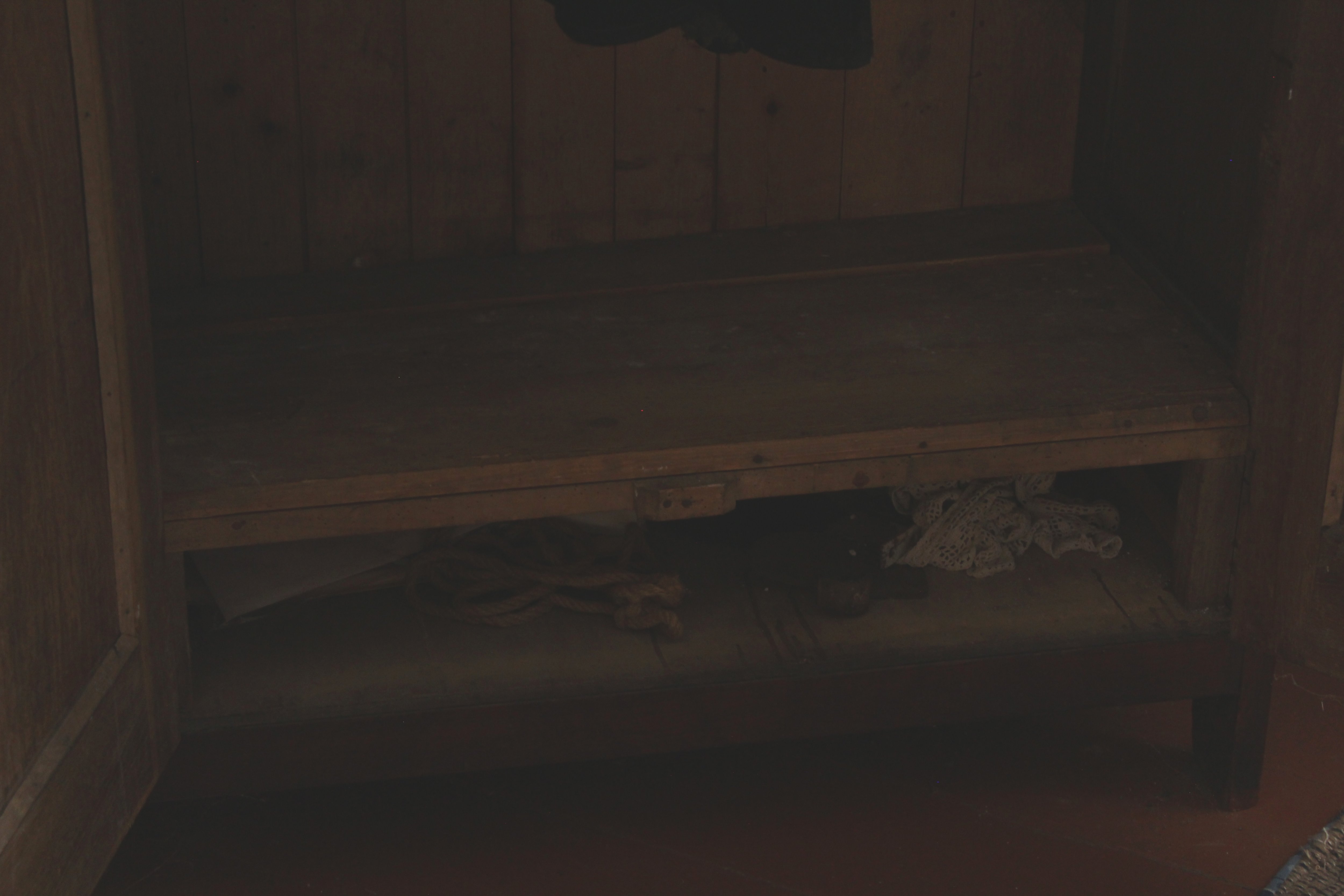 Всередині, переважно поперечина для одягу та широкі полиці, залежно від потреб домогосподарства. Часто шафа ставилася на низькі, стійкі ніжки або мала міцне дно, що забезпечувало її міцність на нерівних дерев'яних підлогах бойківських хат.