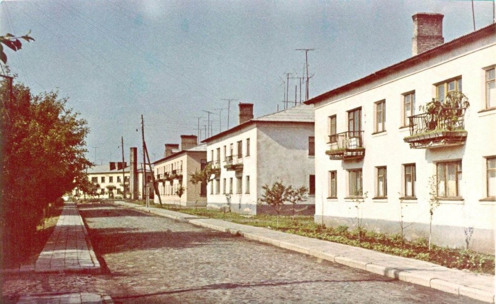 Один із перших кольорових фотознімків міста Рожище, 1970 рік. На світлині — вулиця Пушкіна, відома серед мешканців як «Черемушки». Саме в 1969 році вона набула свого остаточного вигляду: було завершено мощення проїжджої частини та тротуарів, а молоді дерева вздовж вулиці вже добре прижилися.