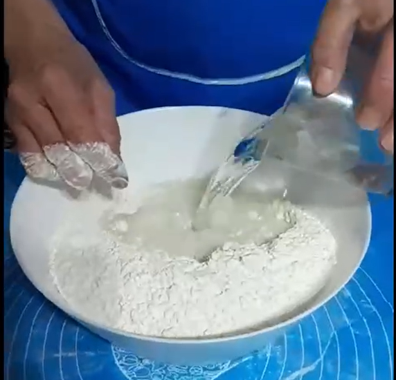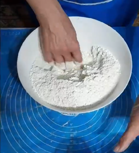 1. Пригтування тіста: до борошна додаємо сіль, цукор, воду, яйце та олію. Усі інградієнти ретельно змішати.