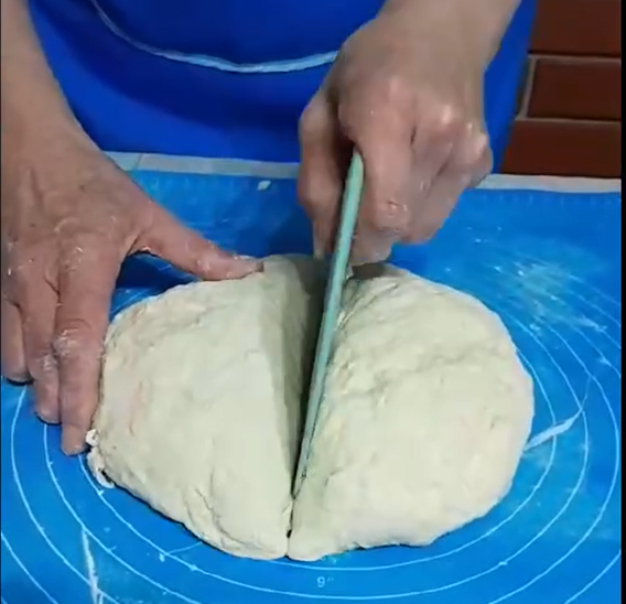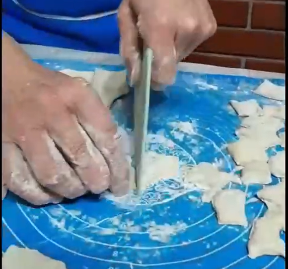 2. Сформуйте палюшки: Тісто поділити на дві частини (щоб краще було його розкачувати). Розкачане тісто нарізати смужками та від них відрізати шматочки у формі квадратиків (ромбиків) Від тіста відрізайте шматочки, скачуйте кульки, ромбики або просто відщипуйте та формуйте ложкою галушки.