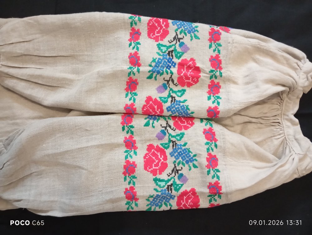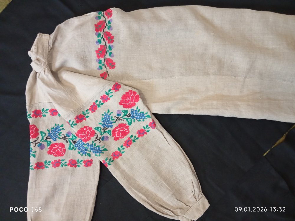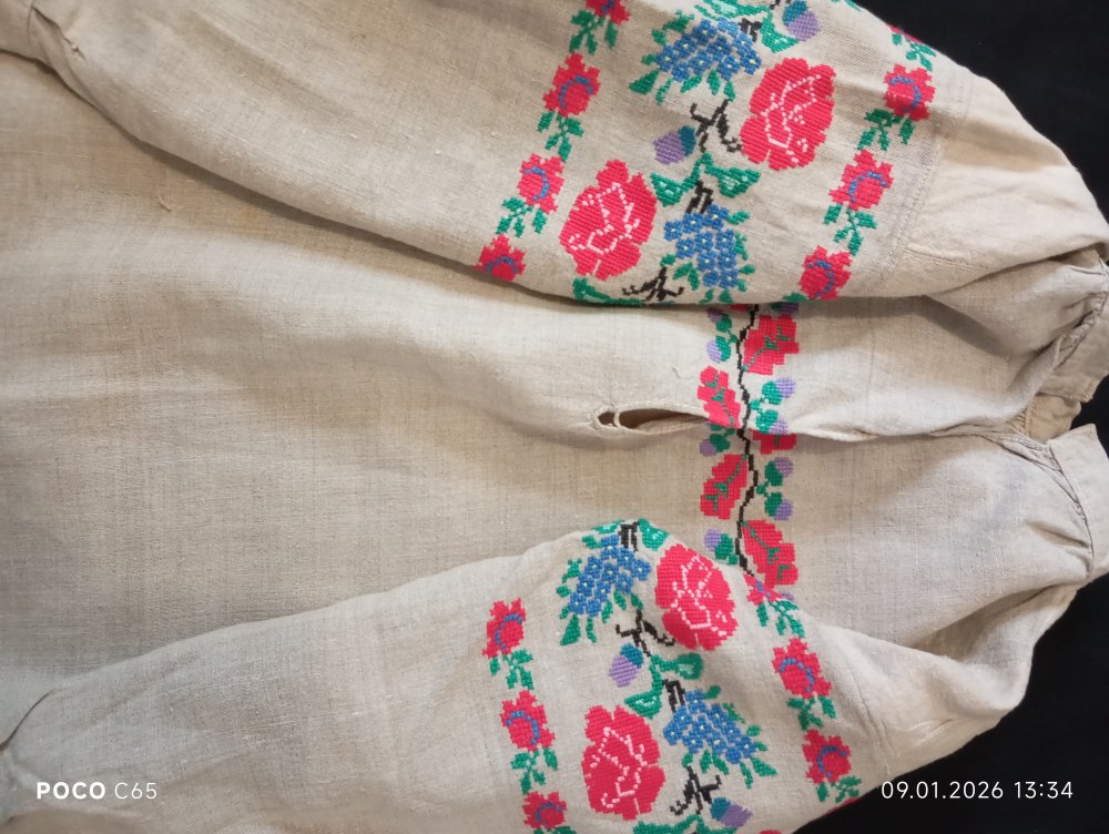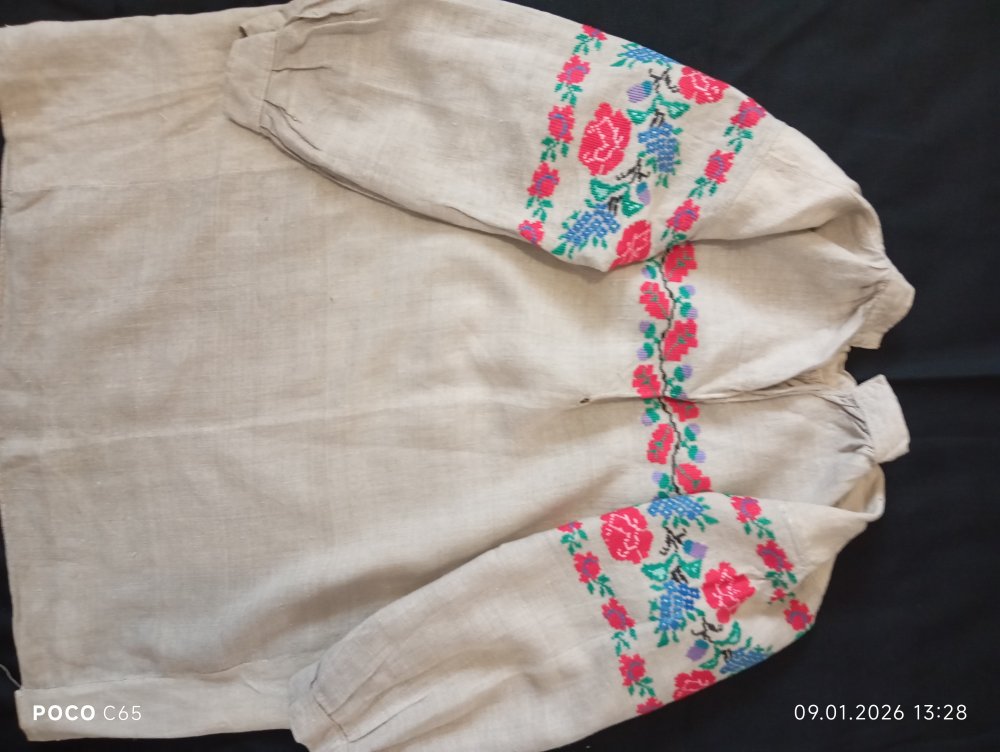 Сорочка вишита хрестиком на сірому лляному полотні жителькою хутора Замістя (між селами Бихів та Деревок) Любежаніною Зінаїдою орієнтовно в 1940-1950 роках)