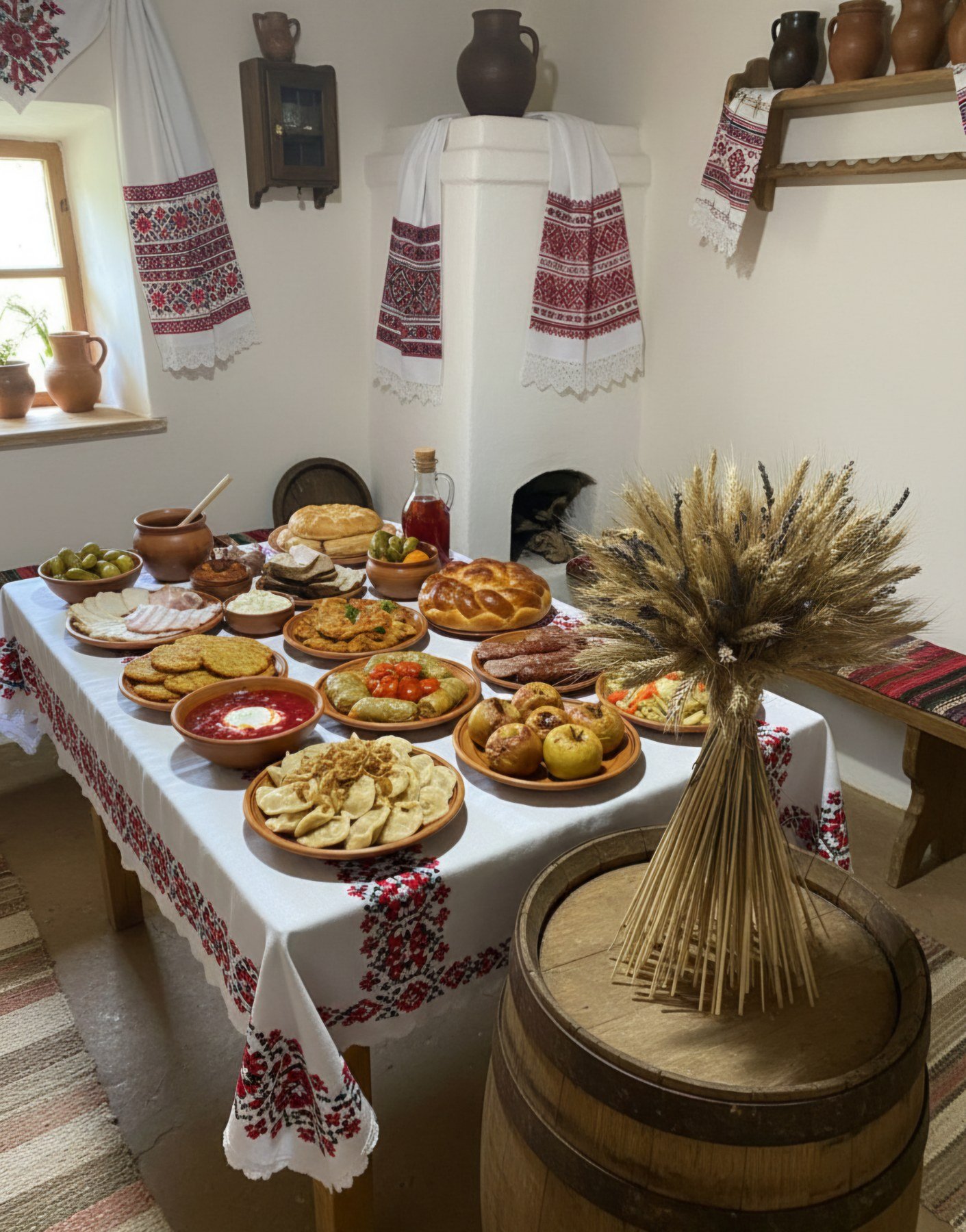 Оформлення столу: Стіл для Святої Вечері набував ритуального значення: його обов'язково застилали соломою (як символ ясел), а зверху накривали лляною скатертиною. На цей стіл виставляли дванадцять пісних страв на чолі з кутею.