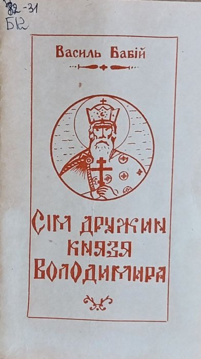 сім дружин князя володимира: історична повість / в. бапбій.- богородчани, 1993.- 64 с: 160.00 грн. в нову книжку василя бабія ввійшла...